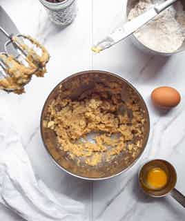 I also always thought this step was the weirdest looking part of the process. But as strange as it appeared while stirring, I enjoyed seeing the way the bits of butter formed tiny islands in the sea of egg whites and brown sugar before submitting to the power of the mixer (insert Tim Taylor “more power” grunt here). The moment when the butter islands finally relent and merge into the other ingredients and become a creamy batter, on the very brink of becoming cookie dough, is beyond satisfying. Not to mention delicious.