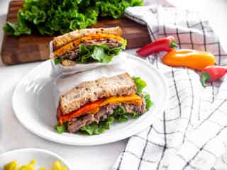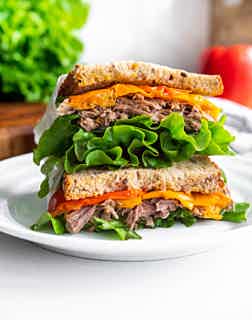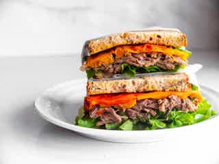 Once it spends a few hours in your Crock Pot, the humble Chuck Roast will be transformed. The smells of the vinegar, garlic and onion are heavenly. The meat itself is savory, and sweet, and allows you to taste all of the ingredients in concert with the flavor of the beef. You can add to your sandwich hot. Or you can let it cool and top it when it’s cold. Both are different, but equally delicious, experiences. (Don’t worry, unless you have a huge family you’ll have enough beef to try it both ways.) I feel that purposeful variation of temperature is one of the great, underutilized ingredients in cooking. Cold toppings on a hot sandwich? Yes, please!