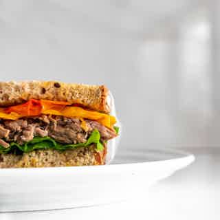 This is no standard lunch meat from a resealable package. This is a flavor packed and substantial addition to your meal. It could be eaten on its own, sans bread and toppings, and it would be amazing. But combining all these pieces into one. Silk into Hermès. Hats forever off to John Montagu, the 4th Earl of Sandwich who invented this remix edition of 18th Century victuals. Done so, I might add, so he could eat while at the gaming table and not have to miss any of the action. Who said nothing ever good came from a hardcore gambling addiction? Anyway, back to the Beef.